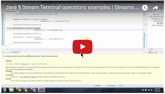 Click the below link to download the code:https://sites.google.com/site/ramj2eev1/home/javabasics/StreamDemo_terminal_op_examples_App.zip?attredirects=0&d=1Github Link:https://github.com/ramram43210/Java/tree/master/BasicJava/StreamDemo_terminal_op_examples_AppBitbucket Link:https://bitbucket.org/ramram43210/java/src/bc0205890e206d66c03b068b168e05c78f68f50d/BasicJava/StreamDemo_terminal_op_examples_App/?at=masterSee also:All JavaEE Viedos PlaylistAll JavaEE ViedosAll JAVA EE LinksServlets TutorialAll Design Patterns LinksJDBC TutorialJava Collection Framework TutorialJAVA TutorialKids Tutorial