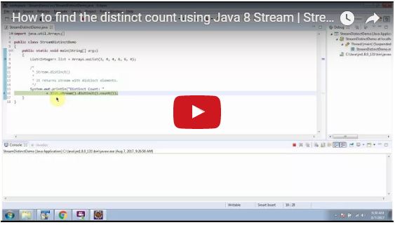 How to find the distinct count using Java 8 Stream | Streams in Java 8 0 replies on 1 page. |