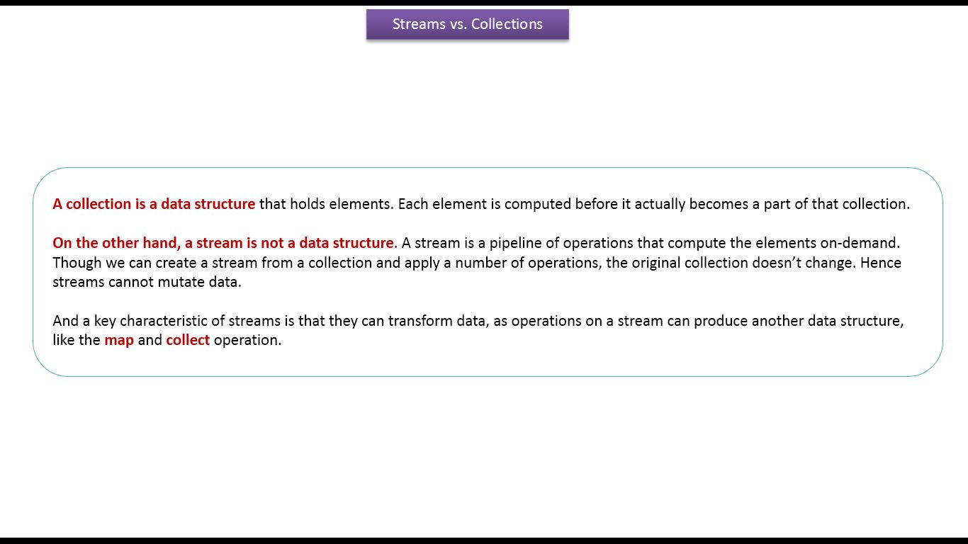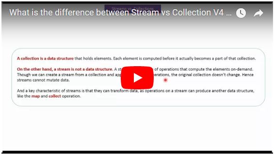 What is the difference between Stream vs Collection V4 | Java 8 streams | Streams in Java 8 0 replies on 1 page. |