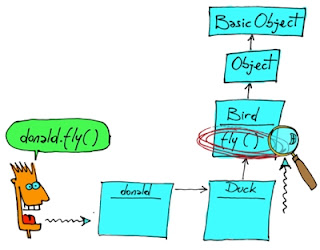 When you call a method, Ruby still walks up the ancestors chain until it finds the method. The net effect is exactly the same as the picture above, except that Bird is now a module instead of a class. So, having a method in a superclass or having the same method in a module doesn't make much difference in practice.