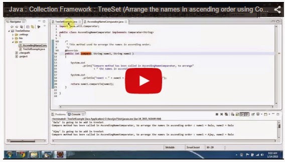 • Read: Java : Collection Framework : TreeSet (Arrange the names in ascending order using Comparator)