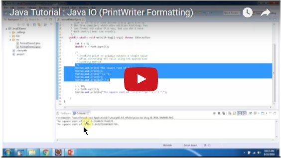 System.out.format("The square root of %d is %f.%n", i, r);