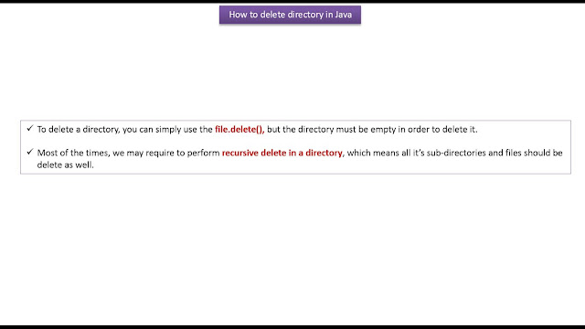 Java Tutorial : Java IO (Java File - How to delete directory - recursive delete) 0 replies. |