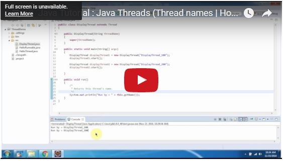 Java Tutorial : Java Threads (Thread names | How to set the Thread Name) - Playlist 0 replies. |