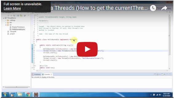 Click here to watch in Youtube : https://www.youtube.com/watch?v=H_1bepEkh18&list=UUhwKlOVR041tngjerWxVccw DisplayThread.javapublic class DisplayThread extends Thread