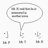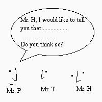 Now, there may be several different endings. One of the endings is Mr. H has listened to what Mr. T said, and gives feedback. Then Mr. T talks back to Mr. P: |